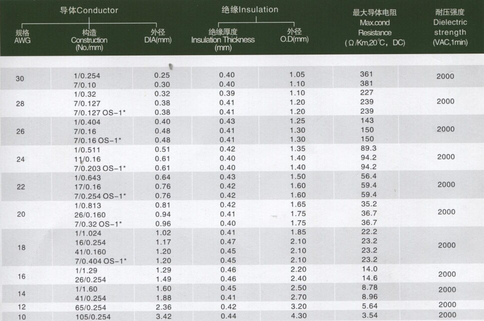 导体使用单支或绞合30-2AWG镀锡或裸铜